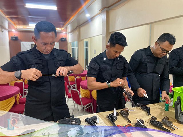 Palembang, LamanQu.Com – Kepala Pengamanan Rutan Kelas I Palembang melakukan perawatan dan pemeliharaan senjata di Rutan Kelas I Palembang sebagai bagian dari prosedur keamanan yang ketat. Perawatan senjata merupakan langkah penting untuk memastikan bahwa seluruh peralatan keamanan dalam kondisi baik dan siap digunakan jika diperlukan. Proses ini biasanya melibatkan pembersihan senjata, pengecekan fungsi, serta penggantian komponen yang rusak atau aus.
