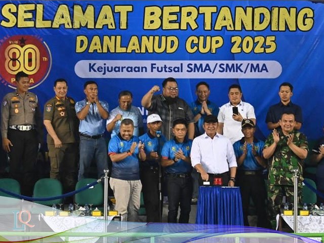 Palembang, LamanQu.Com – Komandan Lanud Sri Mulyono Herlambang (SMH), Kolonel Pnb Zulfikri Arif Purba, S.Sos., MS. (NSSS)., bersama Gubernur Sumsel H. Herman Deru, S.H., M.M., dan pejabat Forkopimda Sumsel lainnya, membuka secara resmi Kejuaraan Futsal Danlanud Cup 2025 yang diikuti 32 tim tingkat SMA/SMK dan MA yang digelar di Gedung Olah Raga Dempo Sport City Jakabaring Palembang, Jumat, (26/9/2025). Acara tersebut dalam rangka peringatan HUT ke-80 TNI tahun 2025.