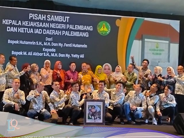 Acara yang berlangsung di Hotel Arista, Senin malam, 3 November 2025, memperkenalkan pergantian Kepala Kejari Palembang dari Hutamrin, SH, MH kepada M. Ali Akbar, SH, MH, sekaligus serah terima jabatan Ketua IAD Daerah Palembang dari Ny. Fenti Hutamrin kepada Ny. Yetty Ali.
