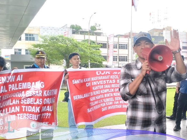 Sementara itu, saat aksi di Kantor OJK Sumsel, massa diterima oleh Analis Madya sekaligus Asisten Direktur OJK Sumsel Abdul Muin Akmal Padang dan Manager Senior OJK Sumsel Wahyu Kristanto.