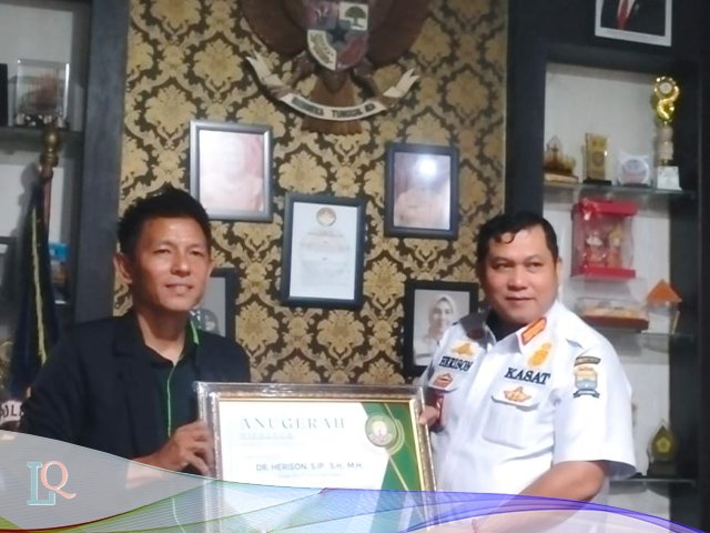 Palembang, LamanQu.Com – Kasat Polisi Pamong Praja (Pol PP) Kota Palembang, Dr. Herison, S.IP., S.H., M.H., menerima penghargaan dari Himpunan Pemuda Sanga Desa (Hipasada) sebagai Tokoh Inspiratif dengan Kategori Pelaksana Peraturan Daerah Menjaga Ketertiban Ketentraman Kota Palembang Secara Humanis.