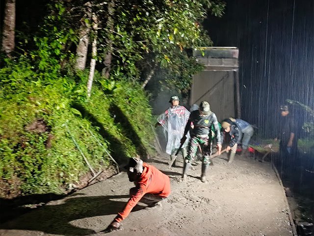 Kabupaten Bandung, LamanQu.Com – Satgas TMMD Reguler Ke-127 Kodim 0624/ Kabupaten Bandung bersama masyarakat Desa Cipelah, Kecamatan Rancabali melaksanakan kegiatan pengecoran jalan, bertempat di Kampung Babakan Simpang Gunung Leutik Desa Cipeleh Kecamatan Rancabali Kabupaten Bandung, Kamis malam, pukul 20.00 WIB, 12 Februari 2026.
