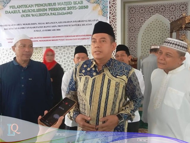Palembang, LamanQu.Com – Pelantikan Pengurus Masjid IKAB Darul Mukhlishin Periode 2025–2030 dengan tema “Insya Allah Pengurus Yang Dilantik Amanah Laksanakan Kewajiban Memakmurkan Masjid IKAB Darul Mukhlishin, Menjadikan Masjid Pusat Ibadah dan Muamalah” serta Pelantikan Pengurus Baitul Maal IKAB Palembang Periode 2025–2030 bertema “Dengan Baitul Maal IKAB Palembang Insya Allah Kita Laksanakan Kewajiban Membangun Ekonomi Umat dan Memberantas Riba” digelar di Masjid IKAB Darul Mukhlishin, Tegal Binangun, Kelurahan Jakabaring Selatan, Kecamatan Rambutan, Kabupaten Banyuasin, Jumat (13/2/2026).