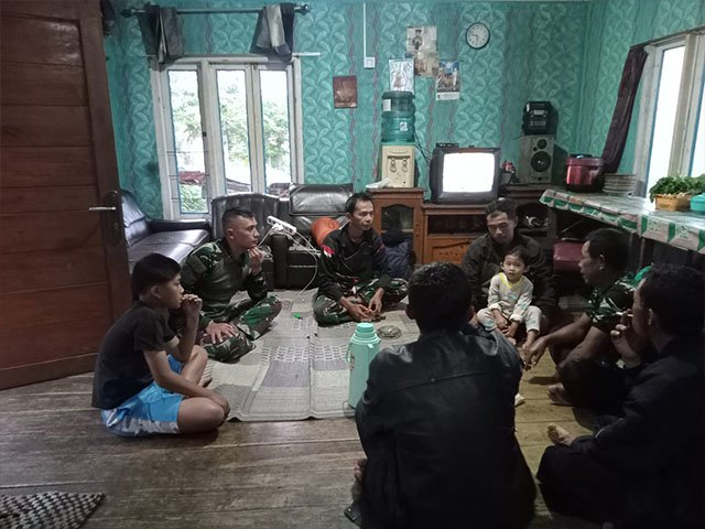 Di sela waktu istirahat pengerjaan fisik, para personel Satgas memilih membaur bersama warga di lokasi penginapan mereka. Obrolan santai yang diwarnai canda tawa menjadi sarana efektif untuk menyerap aspirasi sekaligus menguatkan kemanunggalan TNI-Rakyat.