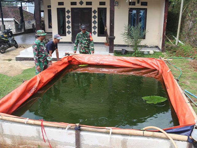 Kabupaten Bandung, LamanQu.Com – Satgas TMMD Reguler ke-127 Kodim 0624/Kab. Bandung Serma Choirul bersama Babinsa Serda Taryana melaksanakan pengecekan bantuan benih lele sebanyak 1000 ekor kepada kelompok tani wanara, bertempat di Kampung Babakan Rahayu, Desa Cipelah, Kecamatan Rancabali, Kabupaten Bandung, Sabtu 21 Februari 2026.