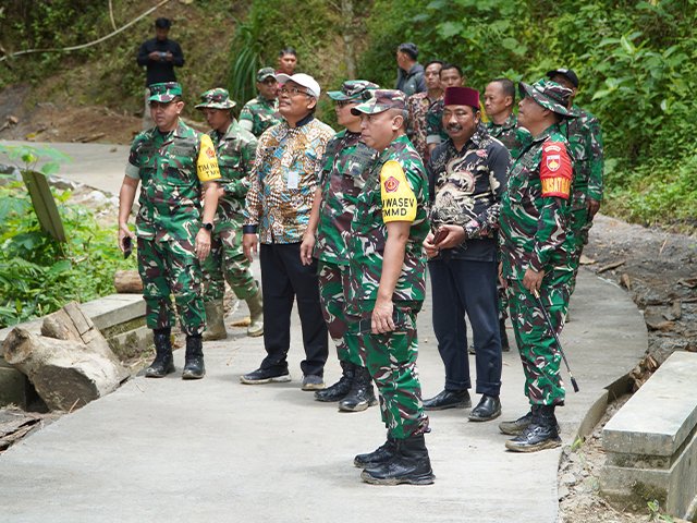 Usai kegiatan penyerahan bantuan, rombongan Tim Wasev melanjutkan peninjauan ke lokasi penanaman pohon Indigofera dan Kaliandra sebanyak 1.000 pohon serta melihat langsung sasaran pembangunan TMMD di wilayah tersebut. Kegiatan ini menjadi gambaran nyata bahwa TMMD tidak hanya membangun desa secara fisik, tetapi juga menumbuhkan harapan, kepedulian, dan masa depan bagi masyarakat.