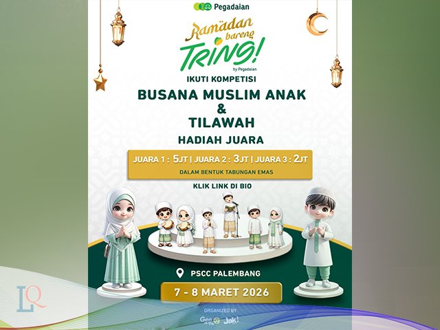 Palembang, LamanQu.Com – Dalam rangka menyemarakkan bulan suci Ramadan 1447 H, Pegadaian Kantor Wilayah III Palembang akan menggelar kegiatan bertajuk “Ramadan Bareng TRING! by Pegadaian” yang dilaksanakan pada 7–8 Maret 2026 di PSCC Icon Mall Palembang.