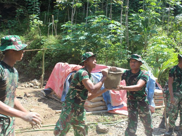 Di tengah panas dan medan kerja yang menantang, kebersamaan dan kekompakan menjadi kunci utama. Tanpa mengenal lelah, para prajurit terus bekerja dengan penuh semangat demi memastikan pembangunan jalan desa tersebut dapat selesai sesuai target.