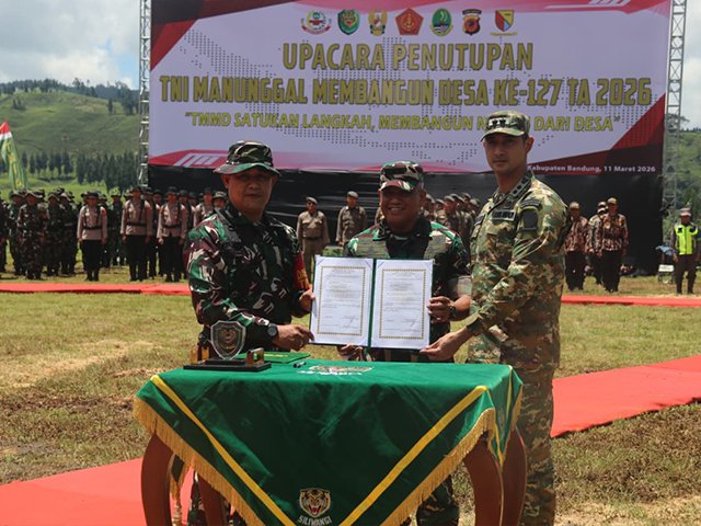 Kabupaten Bandung, LamanQu.Com – Program TNI Manunggal Membangun Desa (TMMD) ke-127 Kodim 0624/Kabupaten Bandung Resmi ditutup Wakasad Letjen TNI Muhamad Saleh Mustafa, Rabu 11 Maret 2026.